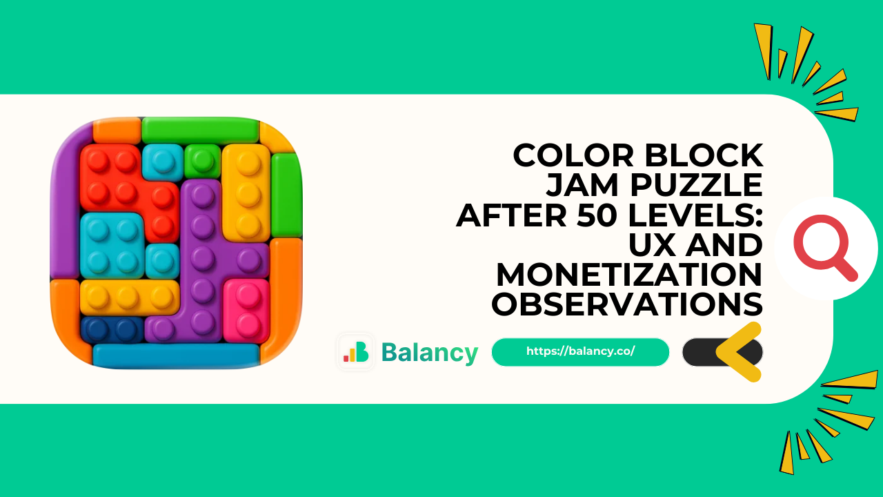 We asked Michael Khripin, Product Owner at Balancy, to spend time inside Color Block Jam Puzzle and share his early observations from the player experience.
