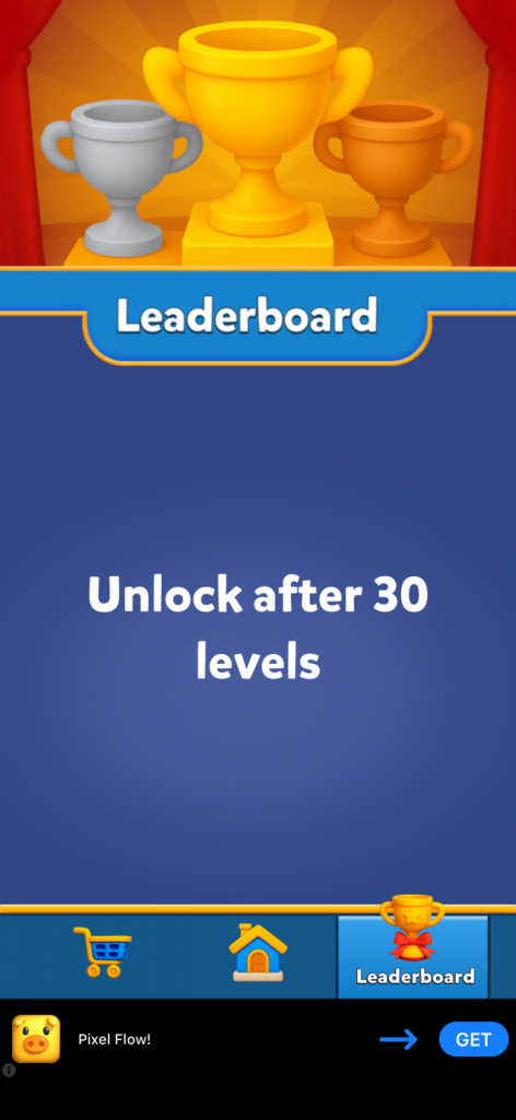 The leaderboard reveals its level requirement only after the player taps into it