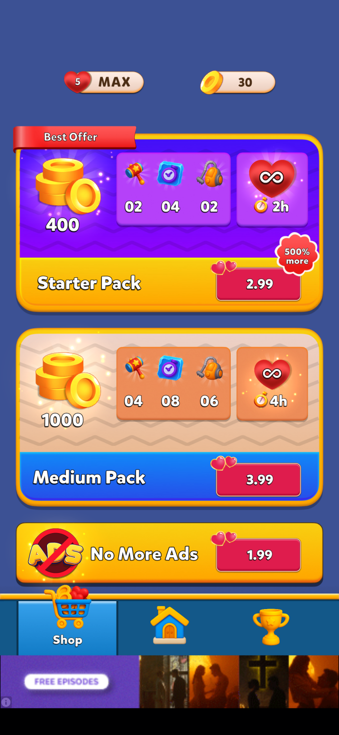 In Color Block Jam Puzzle, these reward mechanics exist — but they are located outside the shop, creating a more fragmented experience.