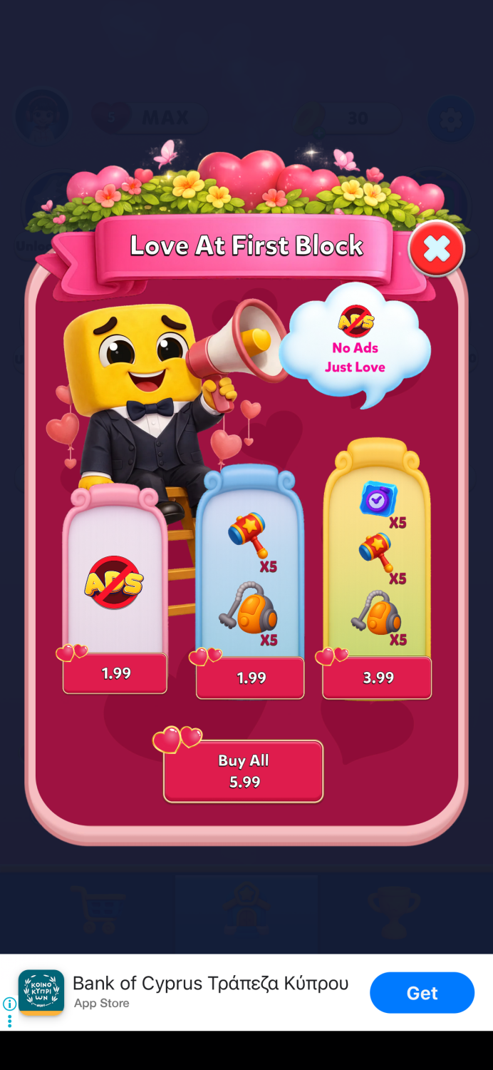 To see this approach in practice, we recreated a Valentine’s-themed LiveOps offer inspired by the mobile game Love & Pies and built it step-by-step using Balancy.
